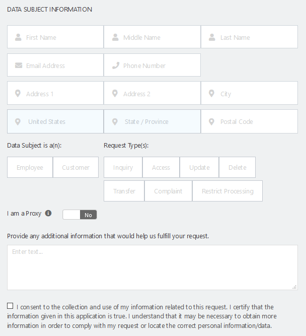 The information you provide here will only be used for the purposes of verifying your identity and residency, identifying the information you’re requesting, and responding to your request. Your personal information will be accessed only by our authorized staff. We will retain the provided information only long enough to comply with legal requirements related to your request.
